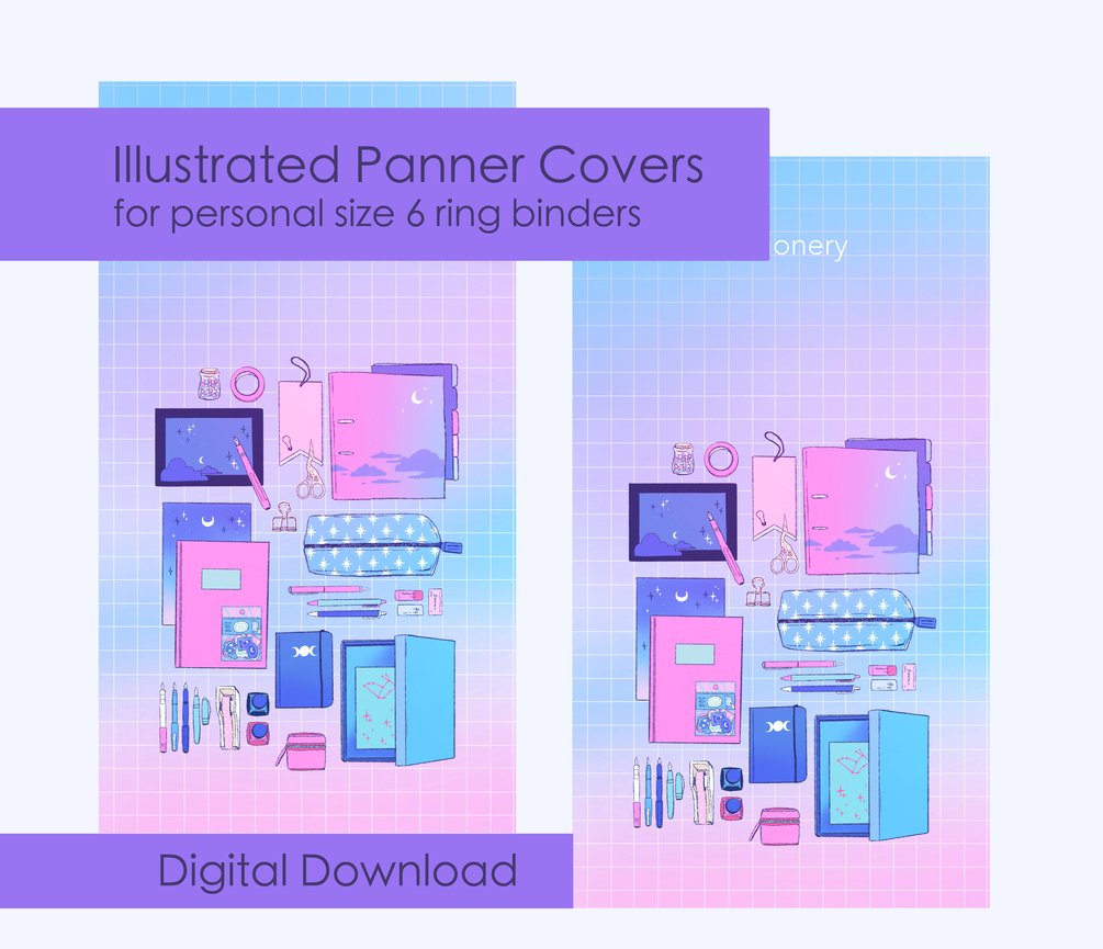 Are you looking for some unique illustrated personal sized binder covers created by a small artist? Then look no further! Here is a set of two illustrated stationery flat lays which would be perfect for stationery lovers or those who have a commonplace book with a section of notes on stationery. The size of these covers fit the personal sized 6 ring binder system like the filofax or moterm and more. Keep in mind these are for personal use only and are not for resale.