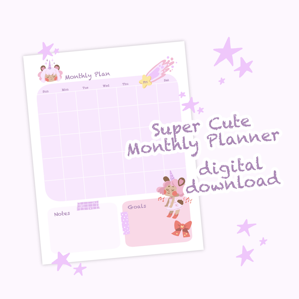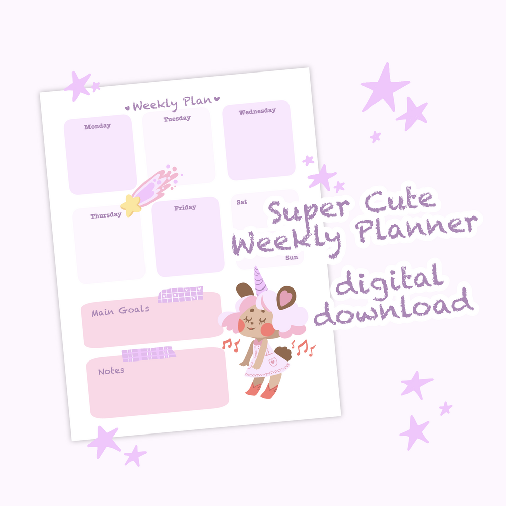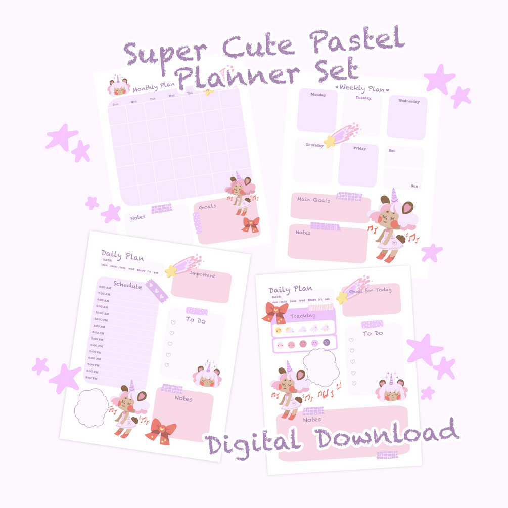 A matching set of super cute pastel planner pages featuring a unicorn bear design. This set includes 2 different daily planner styles, one weekly planner style and one monthly planner style. These are a digital download and you are welcome to print as often as you like for your own personal use. All files are high quality 300dpi PNG files.